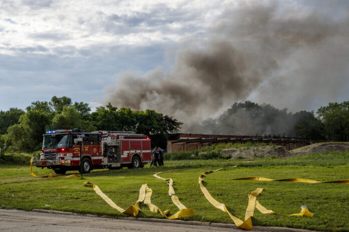 CHICAGO – (AP) – Lithium batteries exploded overnight in a burning former paper mill in northern Illinois that officials believed had been abandoned for a long time and fire officials have decided to let the fire burn out fearing the attempt to extinguish it could cause further explosions.